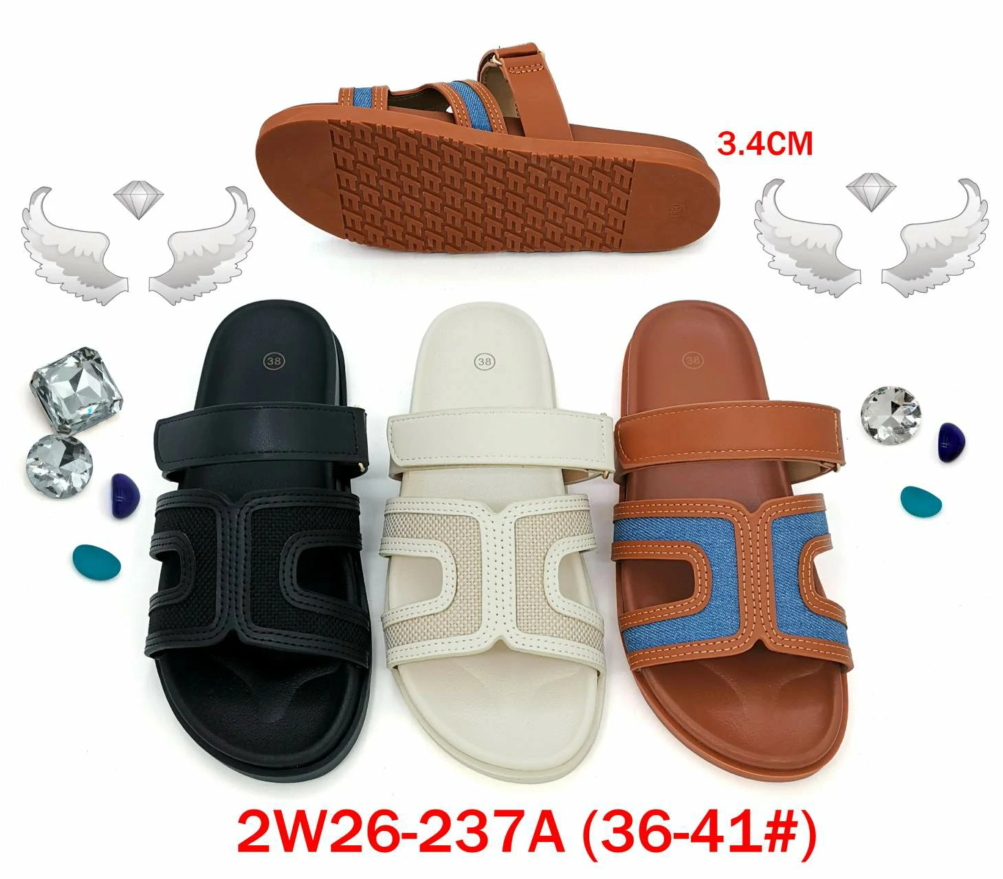 Design & Materials:These are modern, casual slide sandals crafted with PU synthetic leather (for the upper strap) and textured fabric panels (adding breathability and visual contrast). The collection includes 3 colorways: