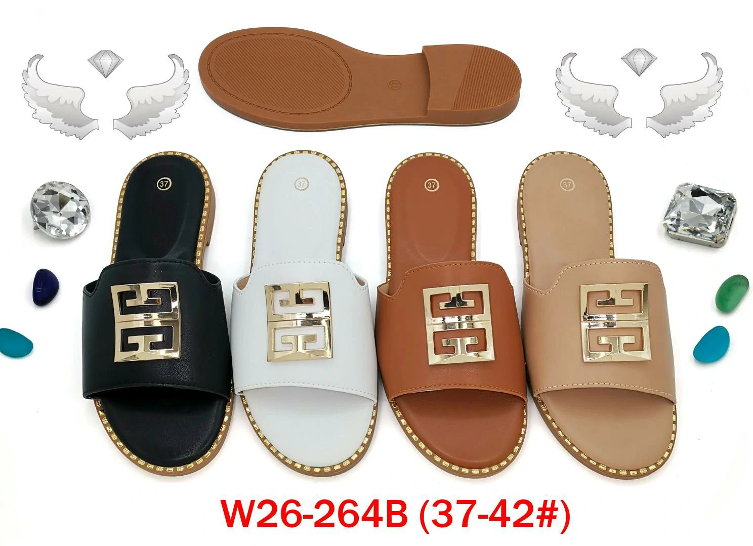 These slides feature a wide, smooth strap (crafted from matte PU synthetic leather) topped with a prominent geometric metal emblem for decorative detail. The collection includes 4 versatile solid colorways: